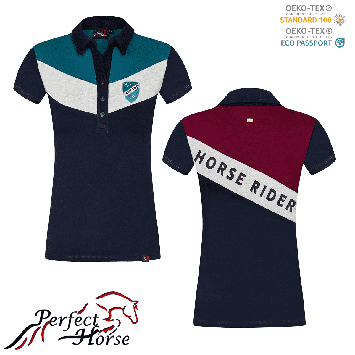 Polówka wykonana z wysokiej jakości dzianiny. Bardzo dobrze dopasowuje się do każdego typu sylwetki. Oryginalne połączenie trzech kolorów materiału. Zapięcie na 3 granatowe guziki przyszyte nitką w kolorze morskim bądź bordo. Polówka zdobiona z przodu tarczą wykonana metodą nadruku, na plecach napis “HORSE RIDER” oraz dyskretna odblaskowa flaga Polski. Polo stanowi doskonałe uzupełnienie całej serii Horse Rider.