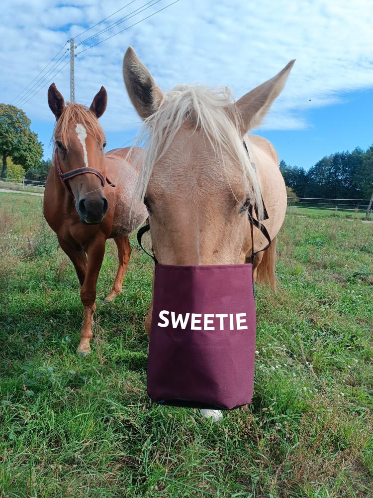 Worek znajdzie idealne zastosowanie przy karmieniu paszą treściwą koni trzymanych w trybie bezstajennym, koni, które rozrzucają jedzenie, dla koni bryczkowych.